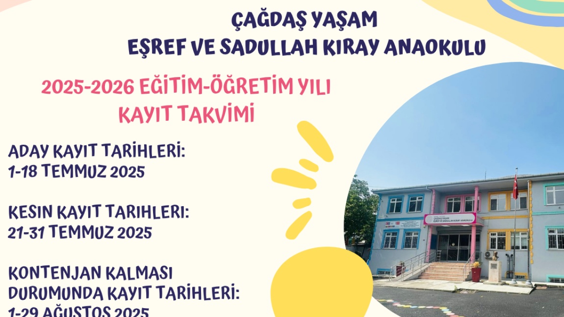 2025-2026 eğitim-öğretim yılı kayıt komisyonu tarafından 01/07/2025 -18/07/2025 tarihleri arasında aday kayıt başvuru evrakları doğrultusunda yapılan incelemeler sonucunda kesin ve aday kayıt listesi oluşturulmuş olup kesin kayıt listesinde bulunan çocukların velileri kesin kayıt işlemlerini 21/07/2025-31/07/2025 tarihleri arasında okulumuza uğrayarak kesin kayıt işlemlerini yapılmalıdır. Kesin kayıt ve yedek kayıt listesine aşağıdaki linke tıklayarak ulaşabilirsiniz.